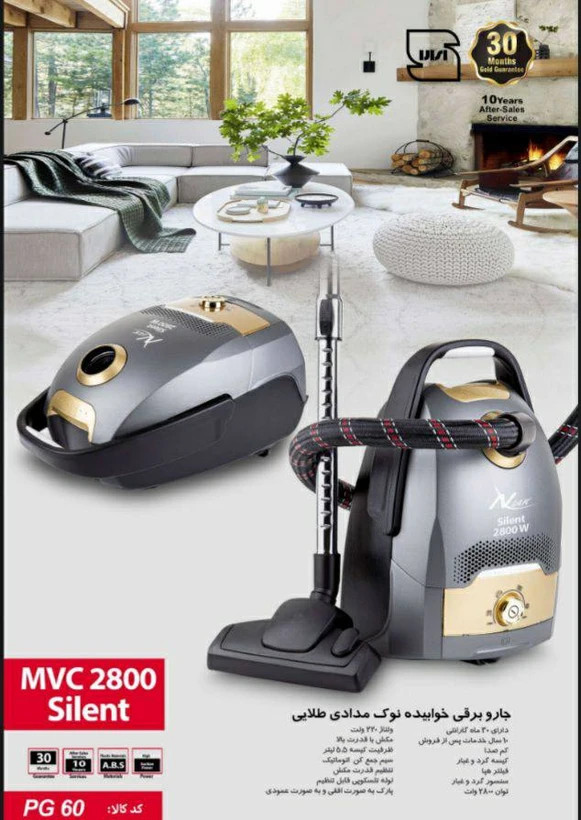 متاسفانه این کالا در حال حاضر موجود نیست. میتوانید از طریق لیست بالای صفحه، از محصولات مشابه این کالا دیدن نمایید.جاروی برقی نیاک مدل MCV2800 یک دستگاه جارو برقی با طراحی مدرن و عملکرد قدرتمند است. این دستگاه به شما کمک میکند تا به راحتی گرد و غبار و آلودگیها را از روی سطوح مختلف پاک کنید. مشخصات این جارو برقی شامل قابلیت مکش بالا، فیلتر HEPA برای جلوگیری از انتشار گرد و غبار، وزن سبک و طراحی ارگونومیک برای استفاده آسان است. همچنین، این دستگاه معمولاً با لوازم جانبی مختلفی ارائه میشود تا بتوانید نیازهای مختلف تمیزکاری خود را برطرف کنید.